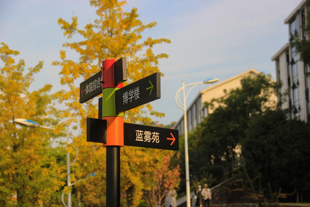 暑假前夕,有师生建议增设导视方向标识,方便师生出行。宣传部利用暑期组织专业人士设计并制作安装校园导视方向标13个,导视立牌4块,索引立牌4个,墙体导视牌 1组,路牌12个。