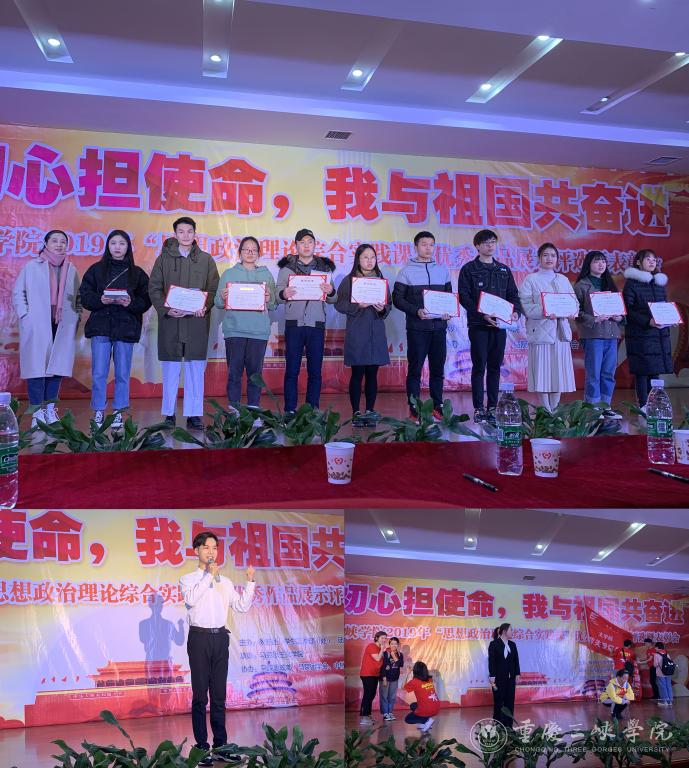 12月24日,由教务处、学工部、团委、马克思主义学院联合举办,以“守初心担使命,我与祖国共奋进”为主题的“思想政治理论综合实践课”优秀作品展示评选暨表彰会在我校举行。
