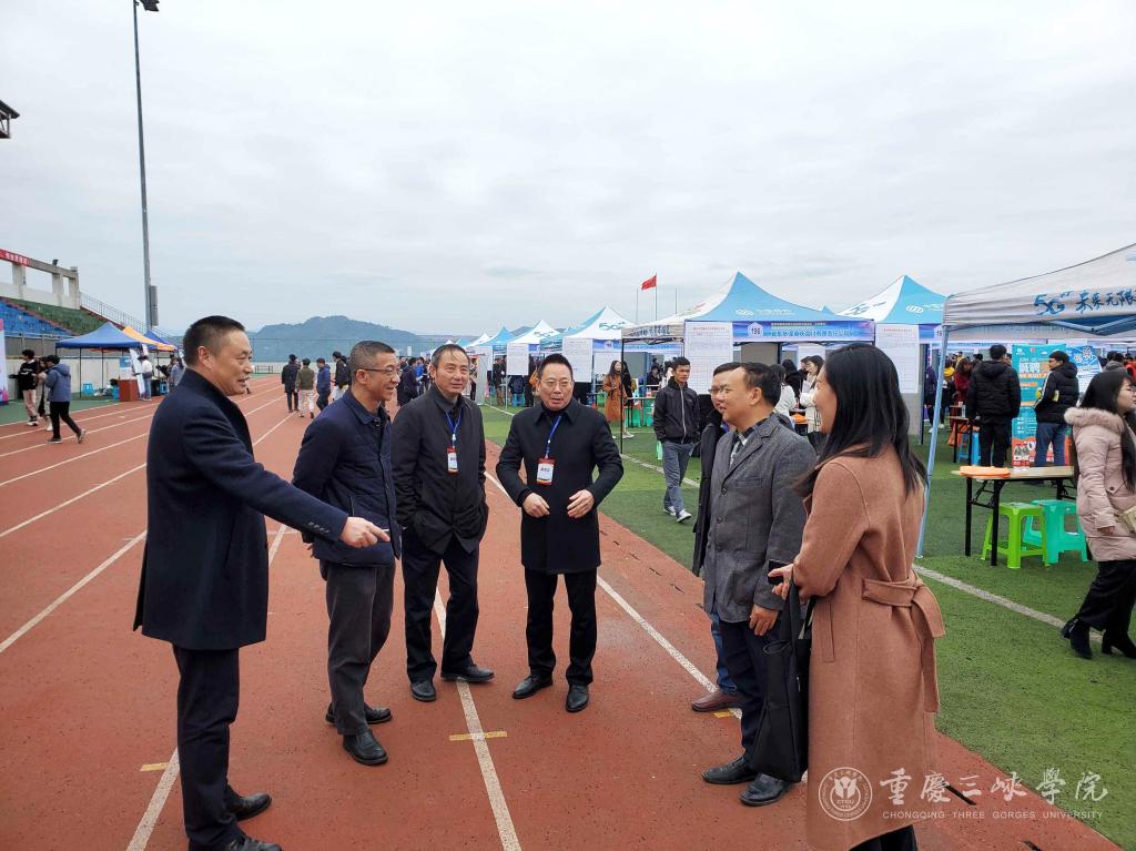 重庆市大中专毕业生就业指导服务中心主任余跃,学校党委副书记、校长张伟,副校长谭明术到现场检查指导工作,他们与招聘单位人员亲切交谈,了解行业用人需求情况和用人单位的经营状况,薪资待遇等,并与毕业生进行交流,了解学生的就业意愿,理想的工作区域,签约情况等。