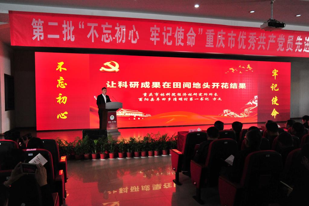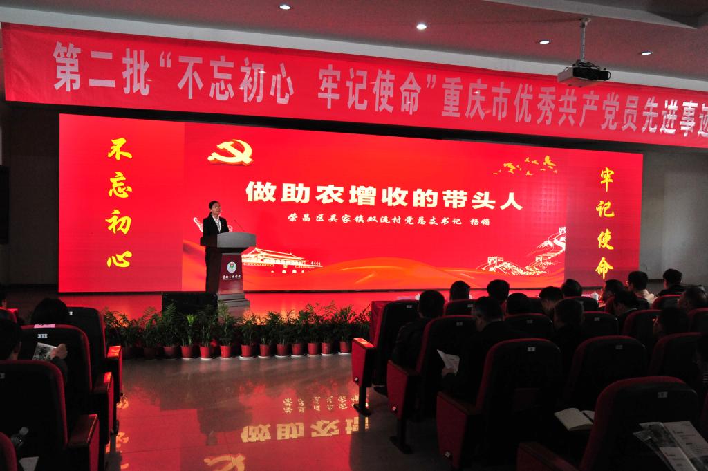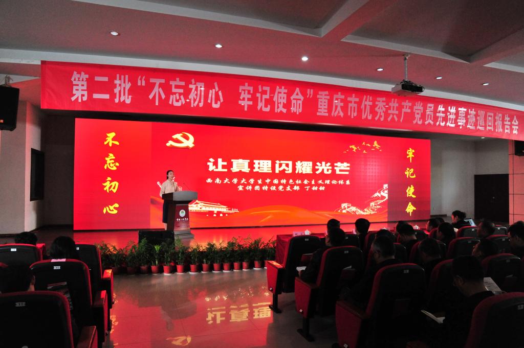 原江北区干果公司离休干部李玉珍;中国工程院院士、国际著名蚕学家、全国优秀教师向仲怀;重庆市三八红旗手标兵、重庆市青年岗位能手标兵杨媚;高级工程师、重庆市林业科学研究院经济林研究所所长、重庆市脱贫攻坚先进个人方文;西南大学大学生中国特色社会主义理论体系宣讲团成员丁甜甜等5名优秀共产党员作了报告。
