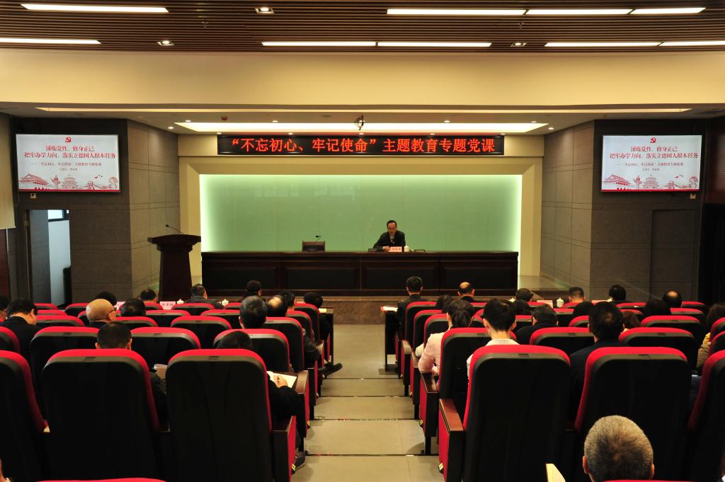 10月31日上午,由党委书记李廷勇主讲的“不忘初心、牢记使命”主题教育专题党课在科技楼连廊会议室召开。学校党委常委、副处级及以上党员干部、各基层党支部书记到场聆听学习。市委“不忘初心、牢记使命”主题教育巡回指导十五组莅临现场指导。