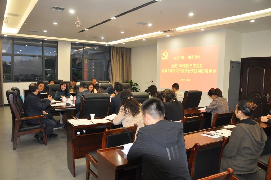 学生处处长任江林介绍了我校立足万州,服务三峡,深化学生社会实践的工作方案。马克思主义学院、美术学院、外国语学院等部门同志就发挥专业特色,开展社会实践和志愿服务,助推美丽万州建设的工作情况作交流。