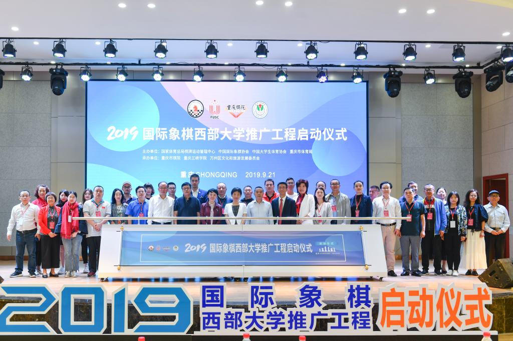 9月21日上午,由重庆市棋院、万州区文化和旅游发展委员会和我校承办的2019年国际象棋西部大学推广工程启动仪式在我校多功能厅举行。启动仪式由重庆市棋牌运动管理中心副主任、重庆市棋院副院长张奎主持。