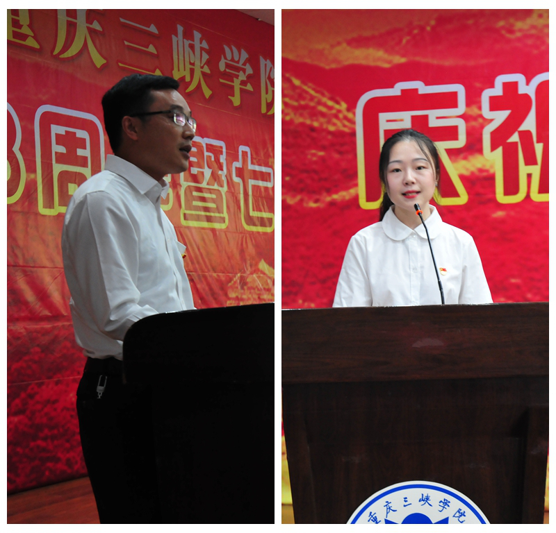 鄢沛、李雨聪分别代表优秀教师党员和优秀学生党员作发言,表示定当发扬党员的先锋模范作用,自觉做学校各项政策的宣传者、贯彻者和落实者。
