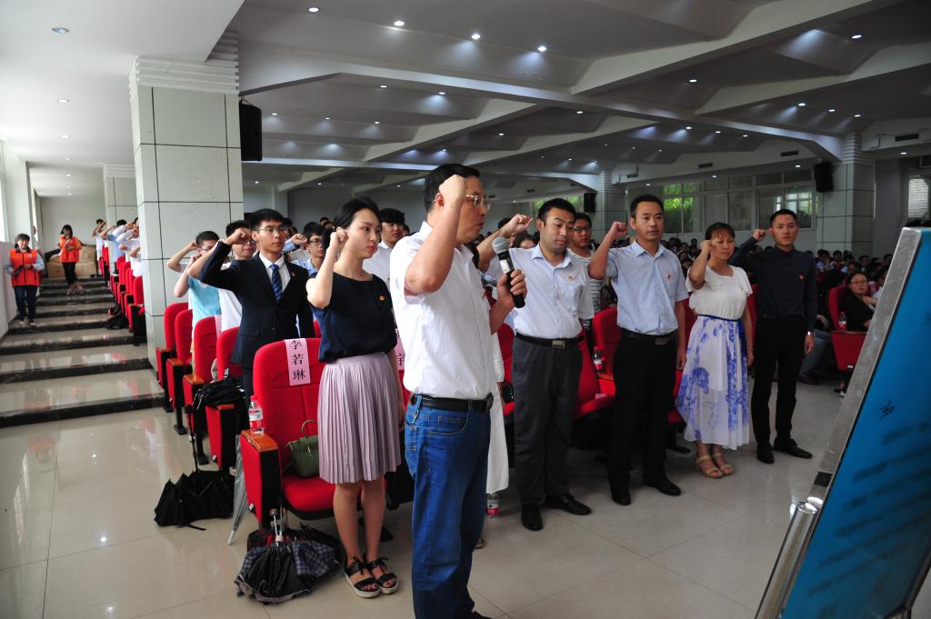 陈文昆宣读新党员名单。在组织部部长陈孝胜的带领下,新党员代表进行了庄严的宣誓。