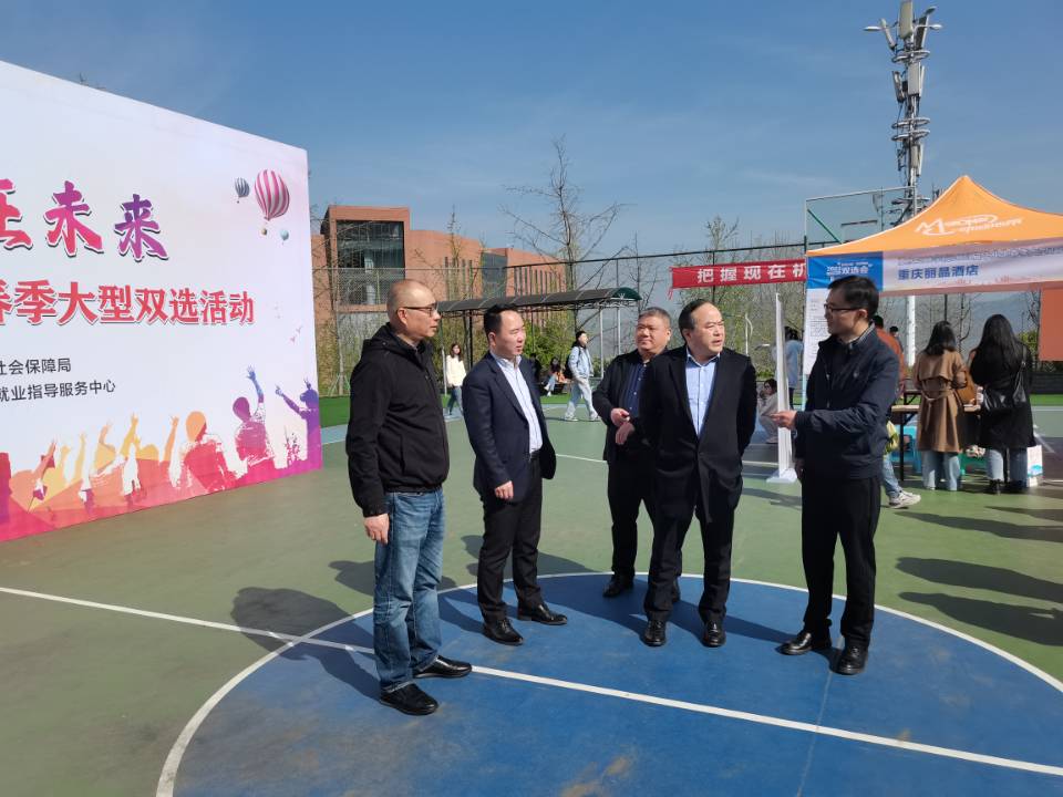 重庆市人才交流服务中心副主任王健、万州区就业和人才中心主任黎伟、市人才交流服务中心大学生工作部部长梁晶、市大中专就业指导中心信息与市场部副部长卜靖等领导来到双选会现场检查并指导工作,详细了解行业用人需求和用人单位的岗位需求、薪资待遇等情况并与毕业生进行交流,了解学生的就业意愿,签约情况等。