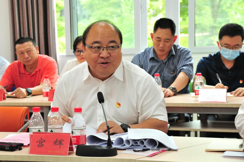 6月21日,学校召开主题教育成果交流会,学校主题教育领导小组全体成员参会,市委巡回指导十五组副组长宫辉、指导组成员吴超莅临现场指导。