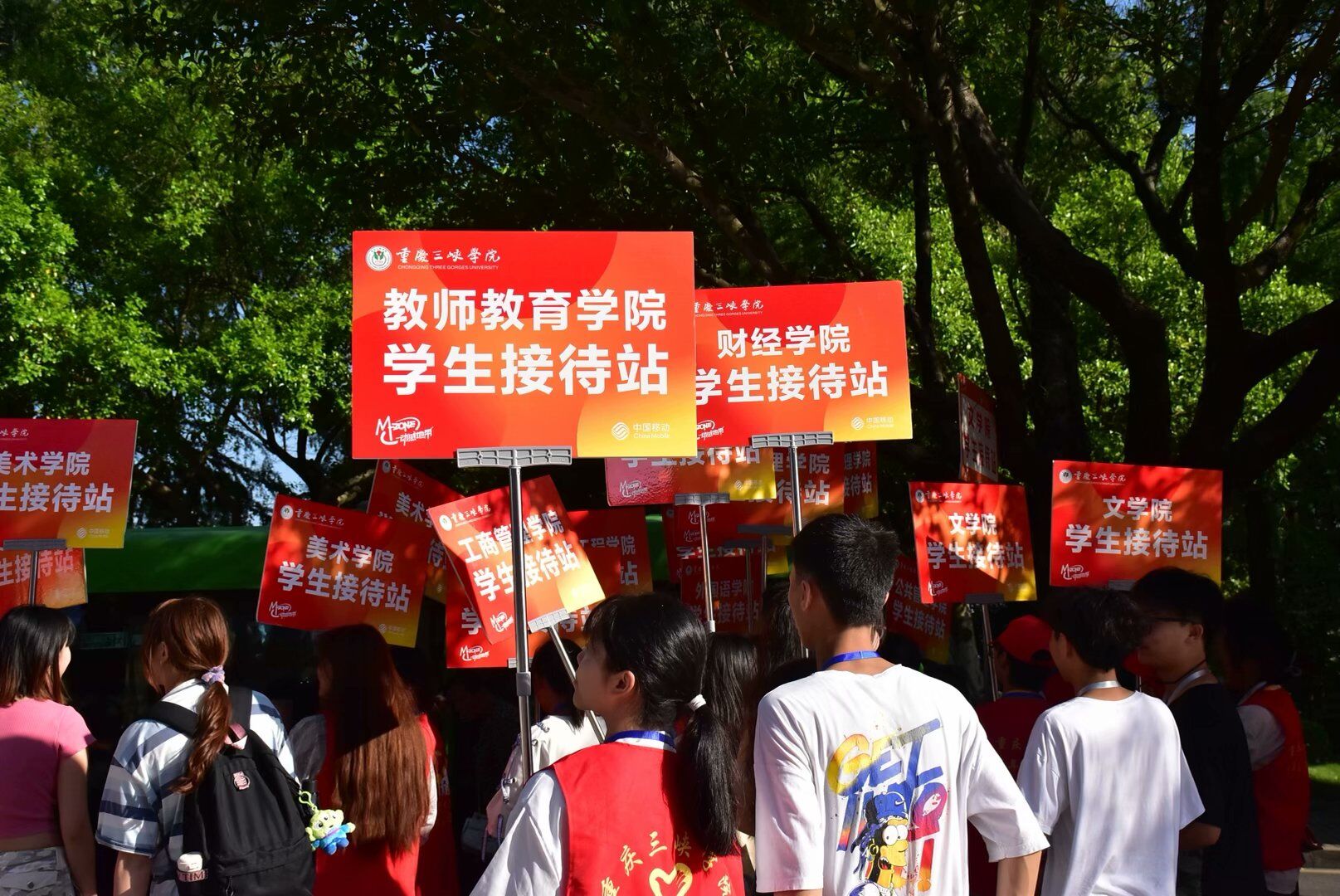 张伟刚到新生接待站,正好一列高铁到站,从站口走出了一队拎着大包小箱的学生。