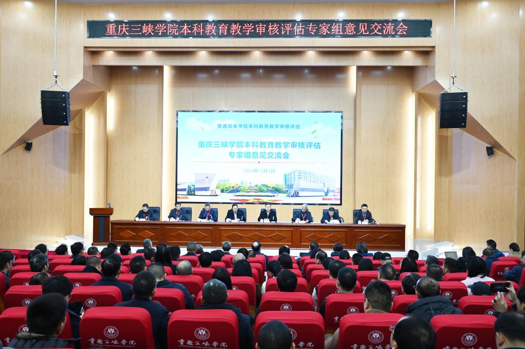 12月1日,学校举行本科教育教学审核评估专家组意见交流会。专家组组长、西南科技大学党委书记董发勤,副组长、五邑大学原党委书记张焜,市教委教育工委委员、市教委总督学吴边,市教委督导室副主任、市政府教育督导室副主任邱小红,重庆市教育评估院党总支委员、高等教育评估所所长董小平,重庆市教育评估院审核评估项目主管、研究生培养办公室副主任潘文敏等专家、学者及领导出席会议。