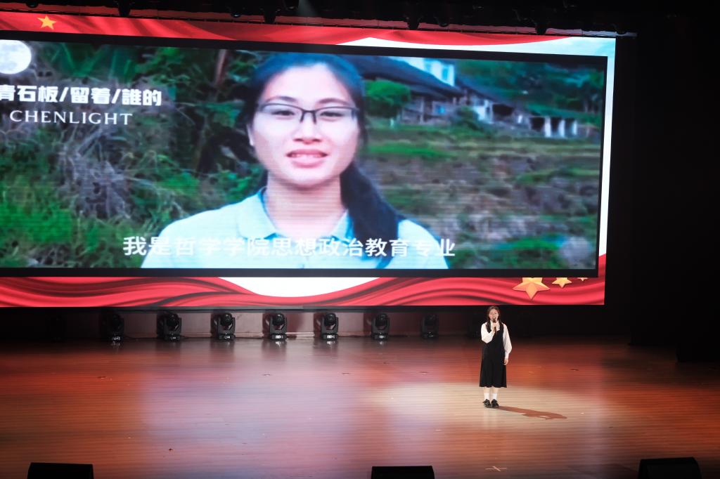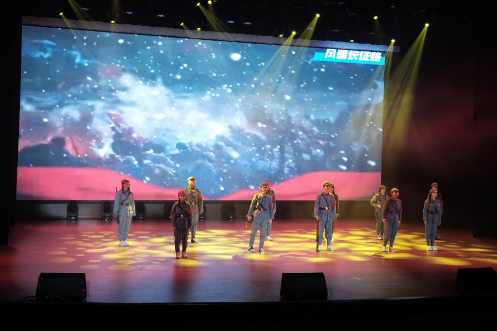 当天的展演环节,情景剧《风雪长征路》《人间曾伏虎》《敢为天下先》《群山不会忘记》,主题演讲《一点星火红,燃我华夏魂》《担当复兴大任,成就时代新人》《以青春之我,续写觉醒华章》《书写青春华章》,红色基地研学《品移民之行,感爱国之情》,研读经典《读<红岩>有感》《读<谁是最可爱的人>有感》,一封感恩的信——《读中国》等相继登台演出。整场展演青春昂扬,精彩纷呈。师生们一幕幕的用心演出,既是一堂堂生动活泼的思政课,也是一场场精彩纷呈的艺术盛宴,展现了我校师生以党的二十大精神为指引,踔厉奋发、勇毅前行、昂扬向上的奋斗姿态。