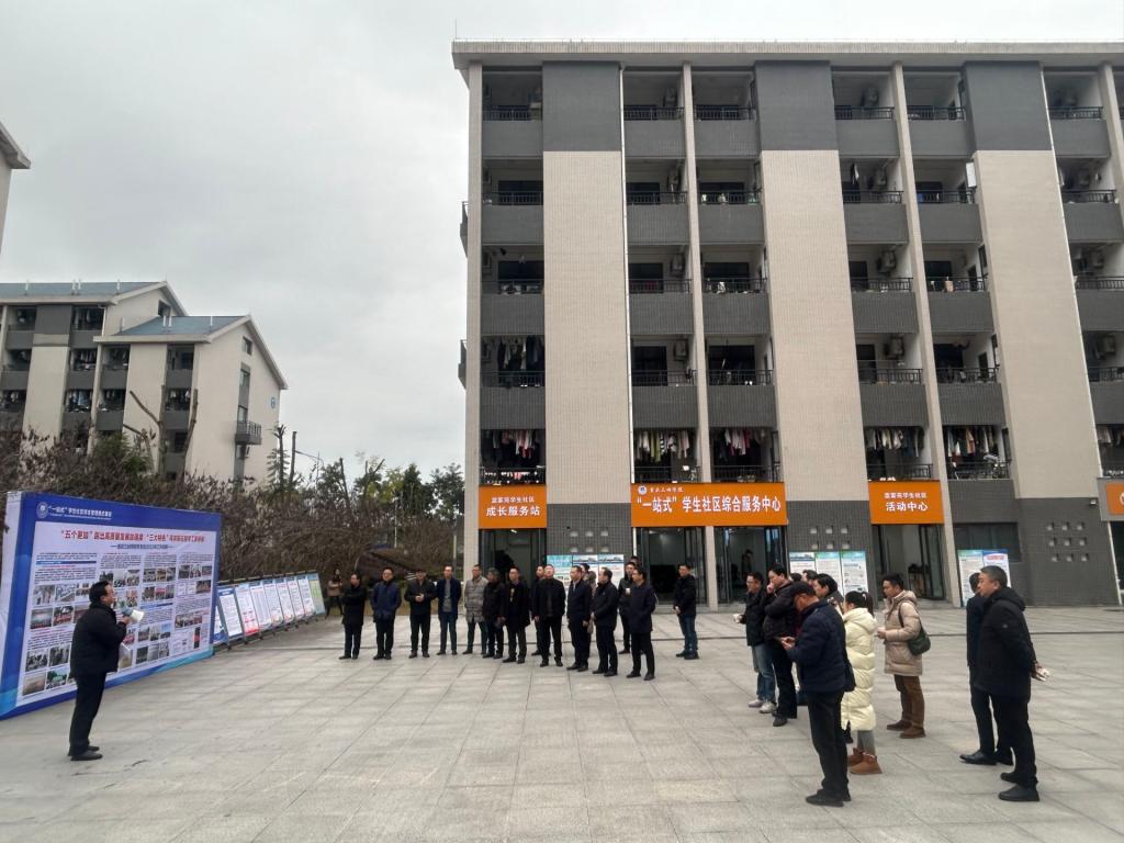 李廷勇强调,要进一步落实立德树人根本任务,以本科教育教学审核评估为契机,推进“以学生为中心,基于OBE理念”的教育教学改革;深入学习贯彻国家发展改革委等部门关于加强高校学生宿舍建设的指导意见,不断改善学生学习生活条件,提高学生幸福感、获得感和满意度;坚持党建与业务“双融双促”,运用党建力量破解基层治理难题,突破提升基层治理效能的瓶颈,打通育人“最后一公里”,促进全员全过程全方位“三全育人”落地落实;持续深入开展“一站式”学生社区综合服务模式建设,重点推进“党建引领、队伍入驻、学生参与、条件保障”等工作,依托学生宿舍开展丰富多彩文化活动,提高学生宿舍品位,满足居住和育人多种需求,不断提升学生管理水平和学生社区治理效能,打造学习型、服务型、智慧型山区库区高校“一站式”学生社区建设样板,提升对学校事业高质量发展的贡献力和支撑度。