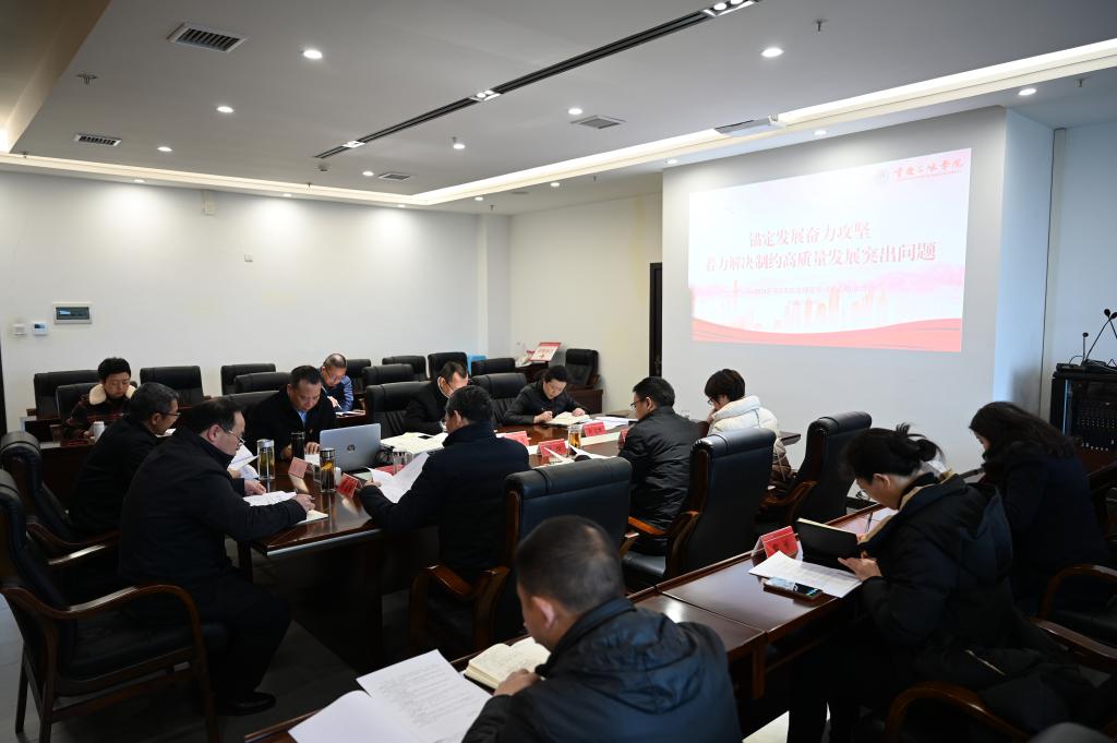 会议强调,要紧紧围绕高质量发展主线,坚持问题导向,准确分析当前发展现状和制约高质量发展各项问题,对照高质量发展的内涵和目标要求,立足岗位职责,狠抓工作落实,尤其要在进一步提升教师教育教学、科学研究、服务社会和人才培养能力和水平上出实招求实效,不断推升学校内涵式发展水平;要进一步加强制度建设,坚持依法依规治校,完善学院内部治理,不断推进学校综合治理体系和综合治理能力现代化,进一步助推学校高质量发展。
