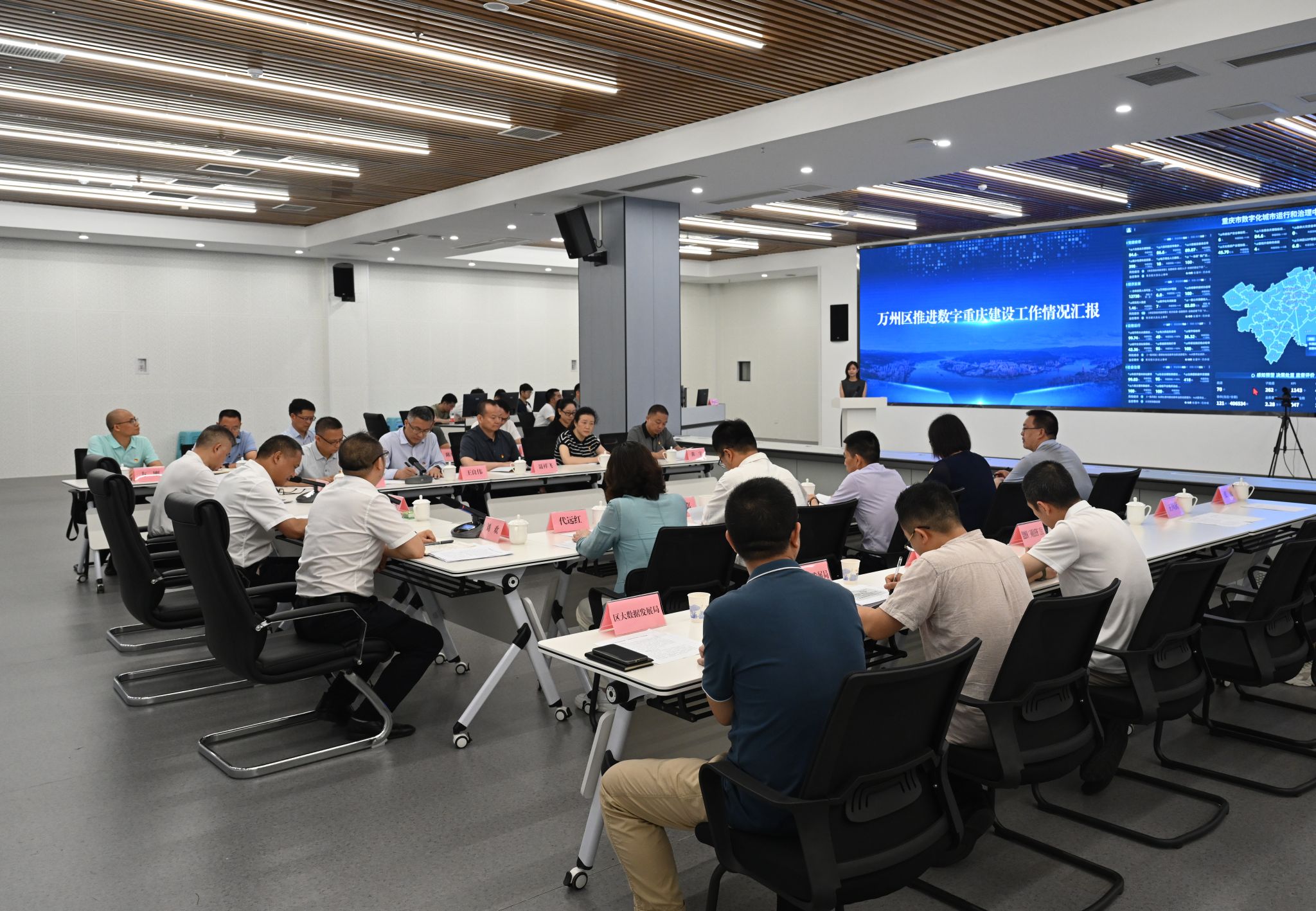 随后,中心组一行前往万州区大数据应用发展管理局调研学习。区大数据应用发展管理局党组书记、局长刘欢对学校党委理论学习中心组的到来表示热烈欢迎,并详细介绍了万州区推动数字重庆建设构建“1361”数字治理体系的总体架构、内涵与实践成效。在区数字化城市运行和治理中心,工作人员通过系统演示,生动展现了运用先进的数字化治理平台,高效协调、精准指挥,成功服务于大型公共赛事的综合保障、辖区防汛防洪的智能预警与应急调度、托育教育资源的优化配置以及医疗保障体系的效能提升等具体场景,充分彰显了数字治理在推动区域现代化进程中的强大引擎作用。