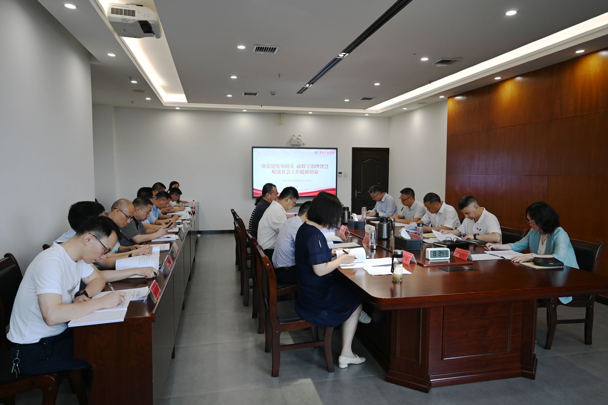 6月19日,YABO鸭脖党委理论学习中心组开展第七次集中学习,聚焦“强党建统领根基 融数字治理智慧 赋能社会工作提质增效”主题,采取理论学习与实地调研相结合的方式助推学习实效。校领导,党委常委,党政办公室、学生处、保卫处、教务处、国资处、研究生处、信息技术中心负责人参加学习。