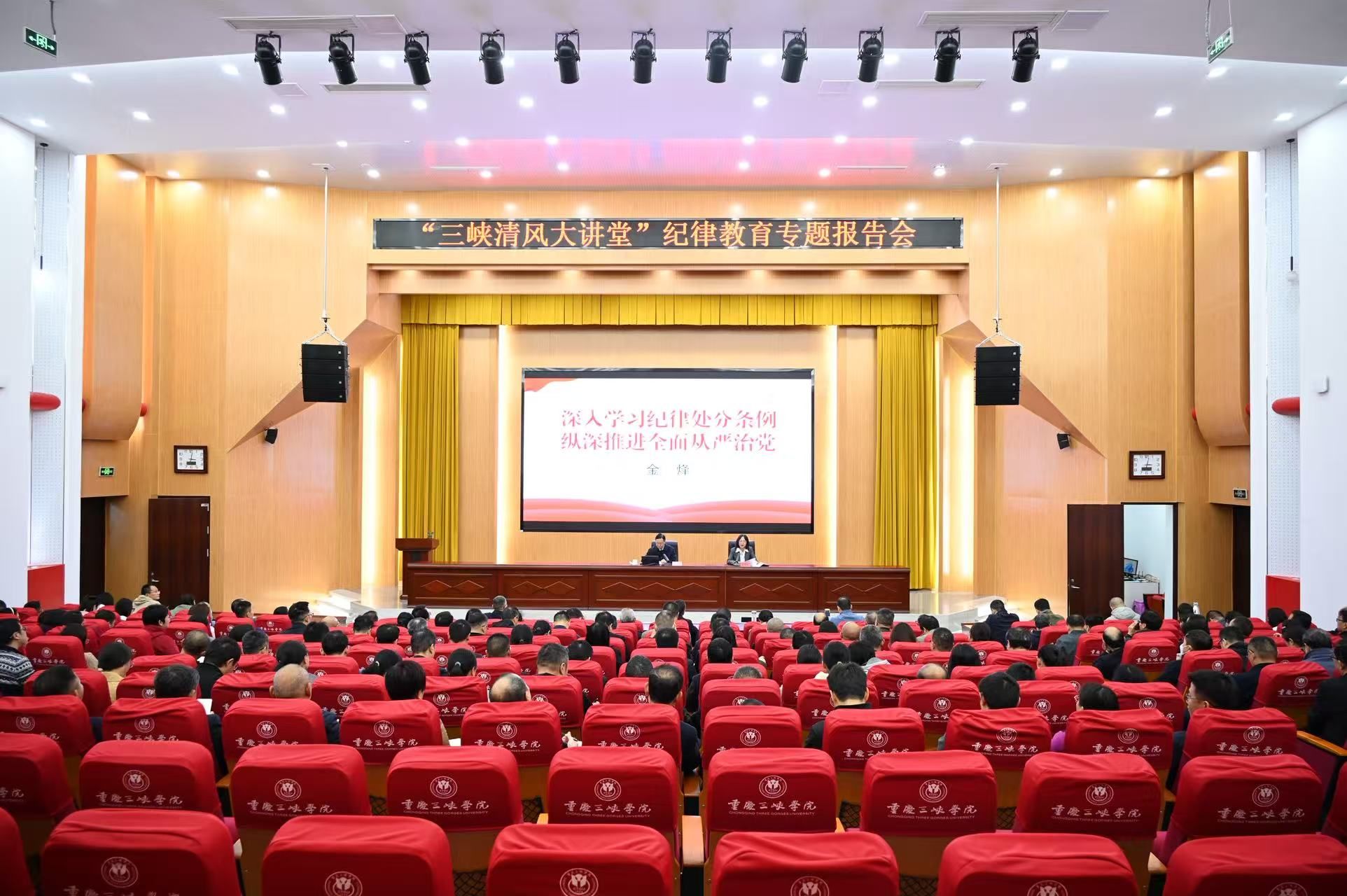据悉,为深入学习贯彻习近平新时代中国特色社会主义思想,全面落实新时代党的建设总要求和新时代党的组织路线,持续加强党风廉政建设和反腐败工作,营造风清气正的校园政治生态,我校打造了“三峡清风大讲堂”学习教育平台,定期邀请专家学者、领导干部开展专题辅导,着力提升全校党员干部的政治素质、廉洁素质,推动清廉学校建设。