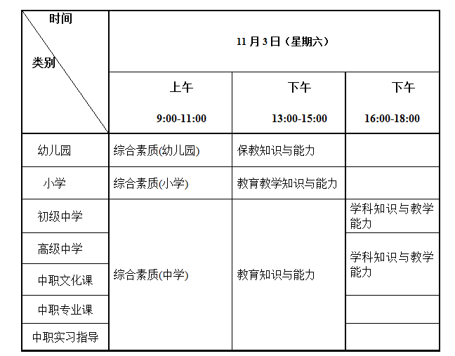 (二)考试日期2018年11月3日,具体安排如下: