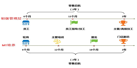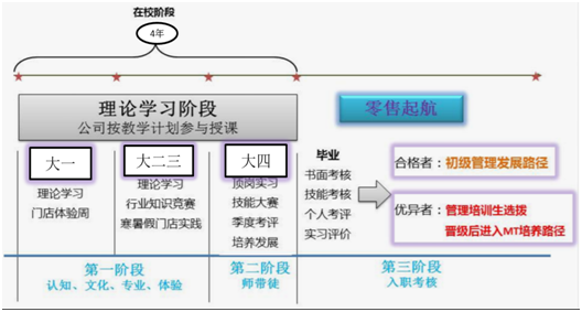 大一学年,寒暑假为门店体验周(寒假为3周、暑假6周)