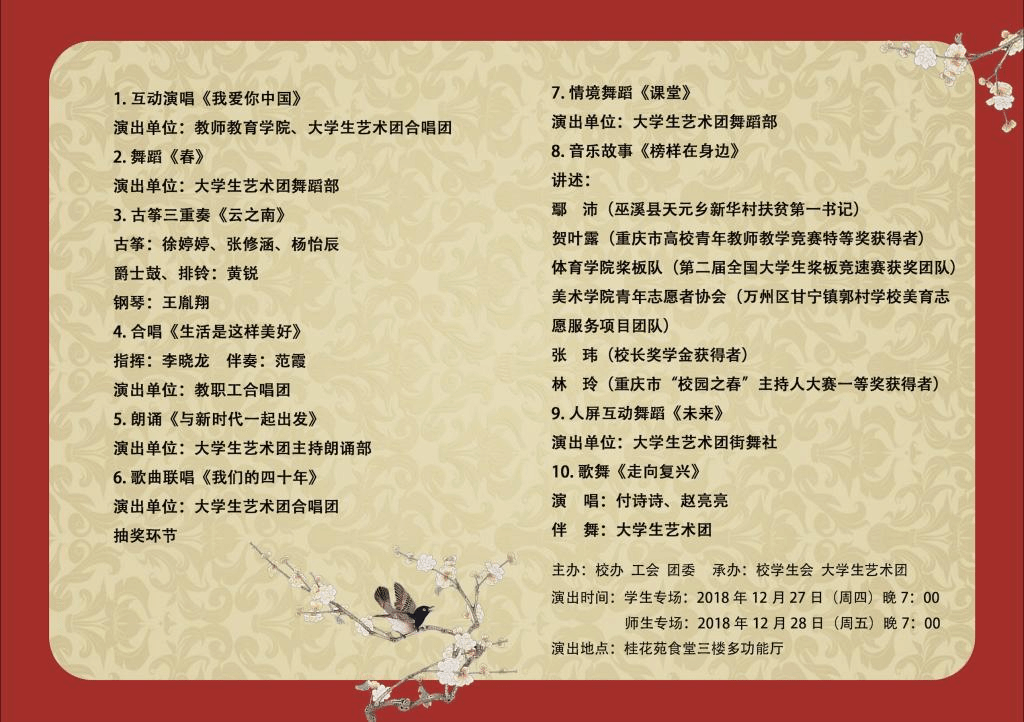 (三)请爱护现场环境和卫生,演出结束后有序退场并主动带走垃圾。