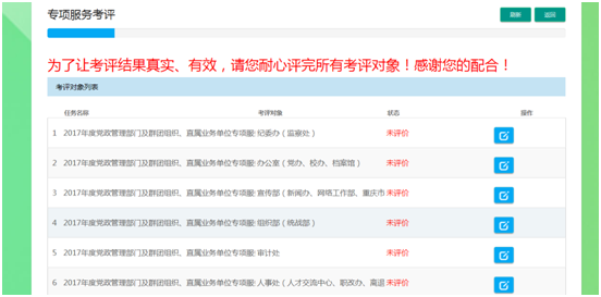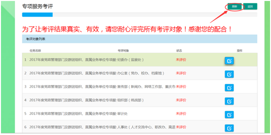 点击“返回”可返回考评任务列表界面。