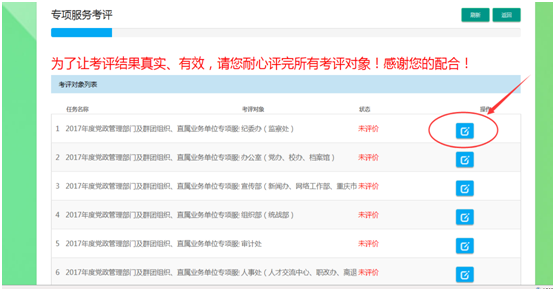 对于“未评价”的单位点击“操作”图标即可对该单位评价,如下图: