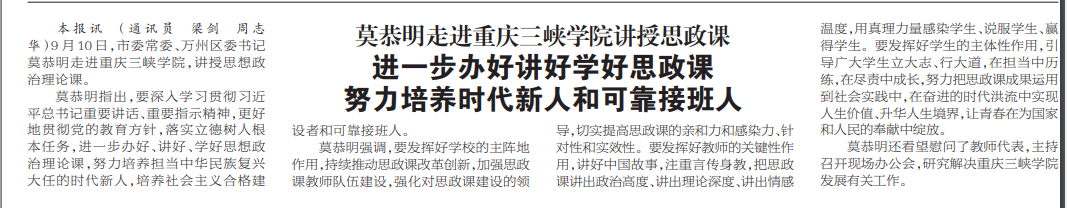 本报讯 (通讯员 梁剑 周志华)9月10日,市委常委、万州区委书记莫恭明走进YABO鸭脖,讲授思想政治理论课。