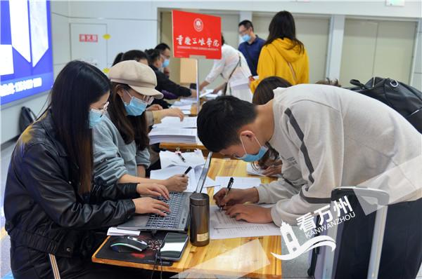 5月13日,万州区高铁北站,三峡学院学生抵万返校。随着高校开学复课,YABO鸭脖在万州机场、火车站等地设立服务点,对返校学生健康登记、专车接送等点对点服务,安全迎接返校学生。预计16日后将迎来高校学生返校高峰。