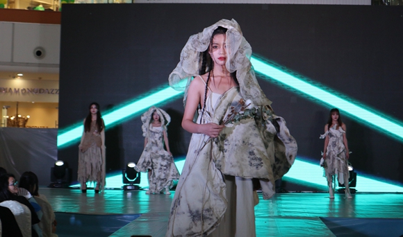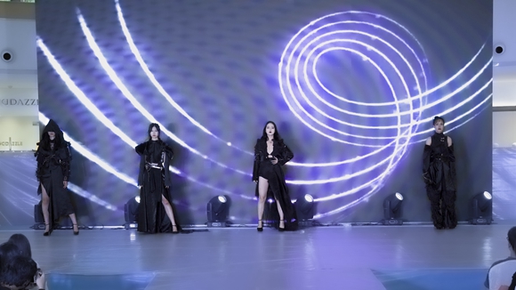此次毕业作品秀的主题是“漪•燃”,来自该校的时装表演队以风格各异的艺术效果在台上进行了精彩演绎。