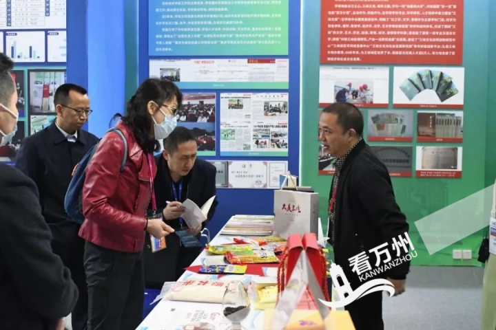 正在这时,又有十几名专家在重庆市高等教育学会刘颖教授的引导下走了进来,他们有的看展板,有的饶有兴趣地翻阅“三峡文化”系列成果书籍,还有的欣喜地“品味”着摆在展桌上的大米、玉米、面条等实物成果,看样子,真的有点流连忘返了。