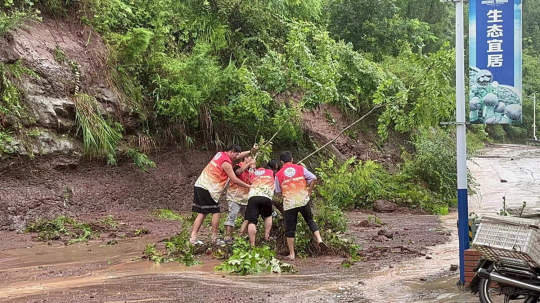 7月4日暴雨过后,村里水、电中断,通向村外的路也被洪水淹没,张丽和14名学生就地转换社会实践内容,帮助与外界交通中断的乡村清淤泥、搬碎石……直到7月5日晚上,为了同学们的人身安全,村委会干部用木板、树干在河上搭建了一座小桥,才帮助这支团队撤离了被洪水围困的区域。