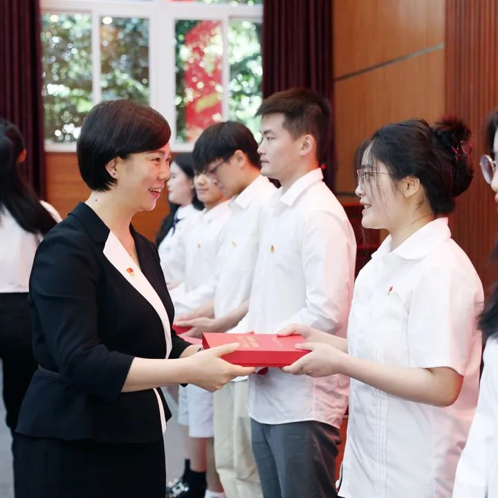 最后,张艳为毕业生党员代表赠送礼物。礼物寓意着学校对全体毕业生党员的殷切希望,希望他们牢记党员身份,永葆党员本色,学习新思想,争做新青年,在奋斗中放飞青春梦想,在拼搏中书写人生华章!