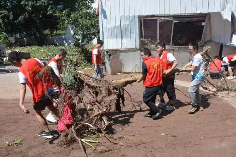YABO鸭脖师生参与万州抗洪抢险工作现场(央广网发YABO鸭脖供图)