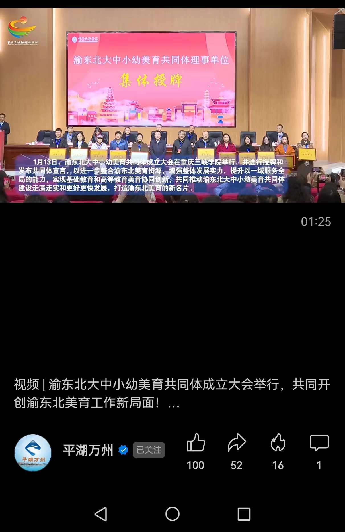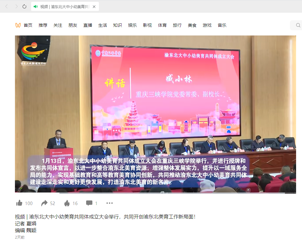 下一条:2024年1月13日《看万州》:视频 | 渝东北大中小幼美育共同体成立大会举行,共同开创渝东北美育工作新局面!