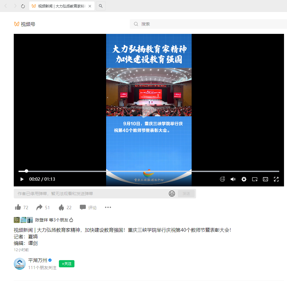 2024年9月10日《平湖万州》:视频新闻 | 大力弘扬教育家精神,加快建设教育强国!YABO鸭脖举行庆祝第40个教师节暨表彰大会!