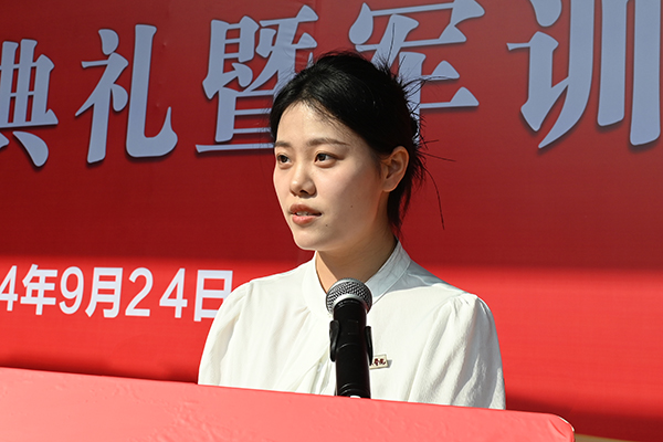 工商管理学院2024级工商管理专业学生赵佳乐作为新生代表展望青春梦想。她提到,新生将以前辈为榜样,不惧挑战,勇于担当,同时在“三峡文化”熏陶下,注重文化传承与创新。