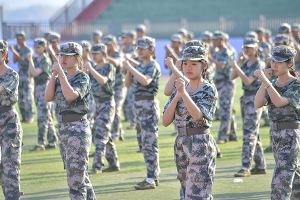 在科目汇报表演环节中,擒敌拳、匕首操、刺杀操、擒拿术等集中展现了同学们的军训学习成果。