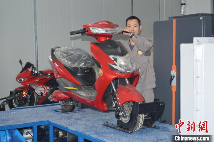 资料图为工作人员在对摩托车成品进行调试检测,准备出厂。重庆市宏立摩托车制造有限公司供图