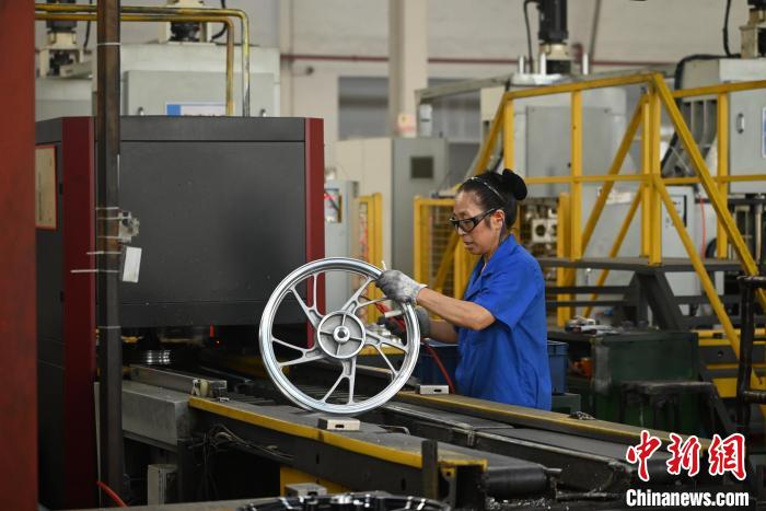 资料图为2024年9月,重庆垫江的一家摩托车轮毂生产基地内,工人正在检测产品。张旭 摄
