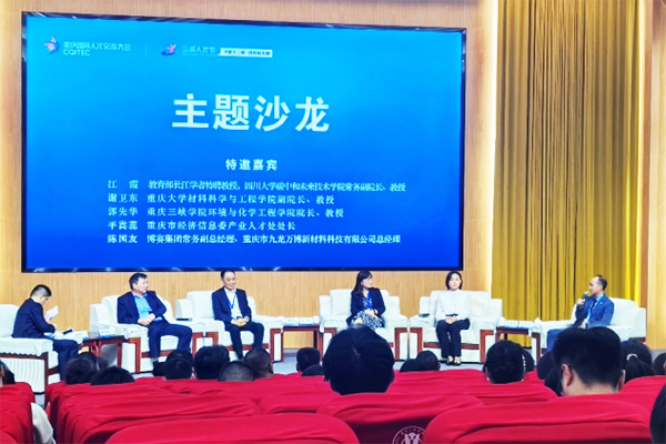 随后,教育部长江学者特聘教授、四川大学碳中和未来技术学院常务副院长江霞教授,重庆大学材料科学与工程学院副院长谢卫东教授,YABO鸭脖环境与化学工程学院院长郭先华教授,重庆市经济和信息化委员会产业人才处处长平嵩蕊,重庆市九龙万博科技有限公司总经理陈国友,通过主题沙龙的形式,共同探讨了万州制造业高质量发展路径、绿色低碳技术创新和人才培养等热点焦点话题,共同展望了万州制造业的发展趋势和广阔未来。