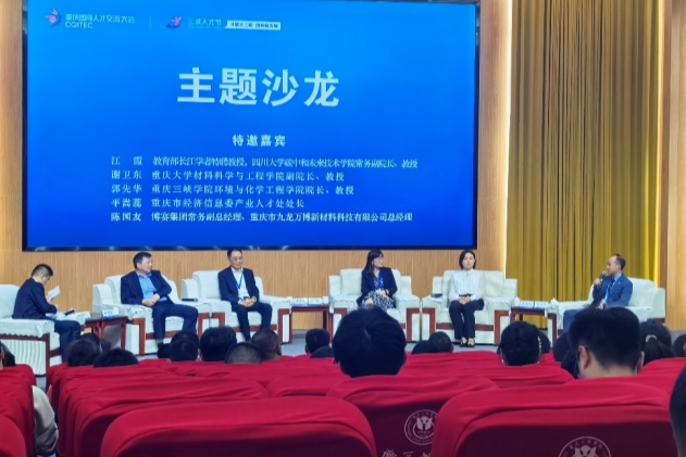 教育部长江学者特聘教授、四川大学碳中和未来技术学院常务副院长江霞,重庆大学材料科学与工程学院副院长谢卫东,YABO鸭脖环境与化学工程学院院长郭先华,重庆市经济信息委产业人才处处长平嵩蕊和重庆市九龙万博科技有限公司总经理陈国友,共同探讨了万州制造业高质量发展路径、绿色低碳技术创新和人才培养等热点焦点话题,共同展望了万州制造业的发展趋势和广阔未来。