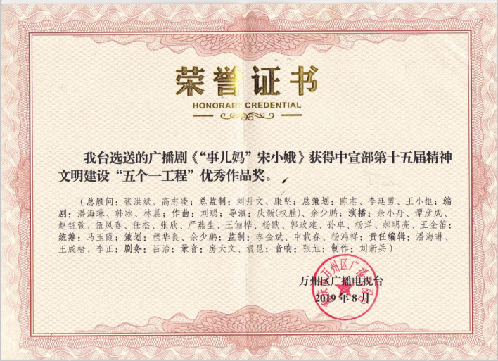 《“事儿妈”宋小娥》荣获中宣部第十五届精神文明“五个一工程”优秀作品奖。学校供图 第1眼TV-华龙网发