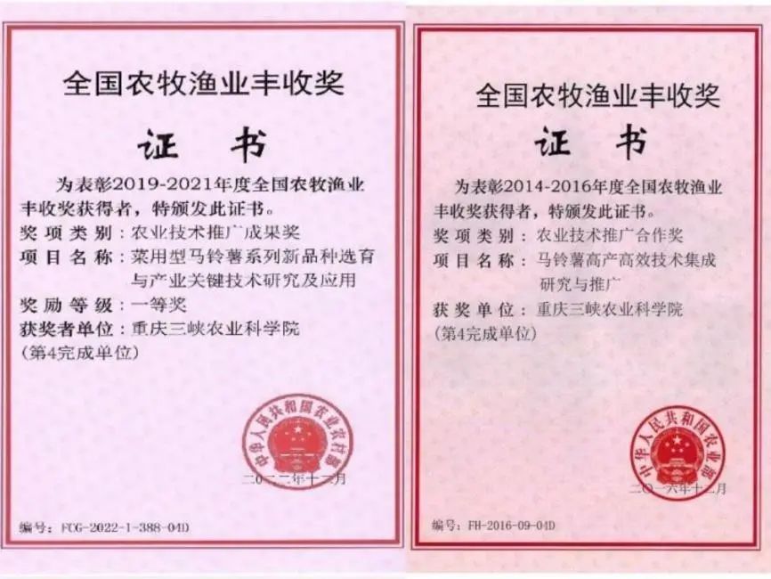 学校马铃薯系列成果荣获全国农牧渔业丰收奖。学校供图 第1眼TV-华龙网发