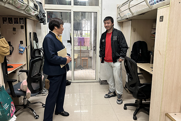 抽查寝室时,遇到同学不在寝室的,她抽查结束后会再次上楼查看;遇到个别特殊情况,则会严格要求学生进行人脸识别,通过仔细对比学生信息、与学生视频连线,确认学生所在位置,并将相应情况报告辅导员做好记录。
