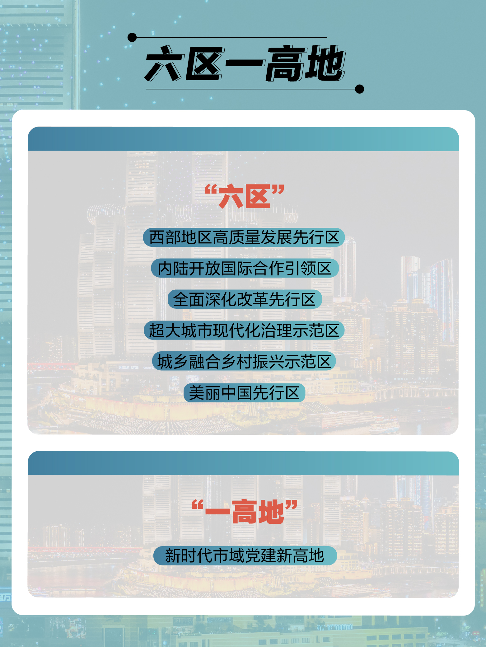 2月5日,重庆市委书记袁家军在“新春第一会”上表示,要聚焦奋力谱写中国式现代化重庆篇章总纲领总遵循,进一步强化党建统领,迭代升级“六区一高地”建设体系构架,奋力打造“西部领先、全国进位和重庆辨识度”标志性成果。