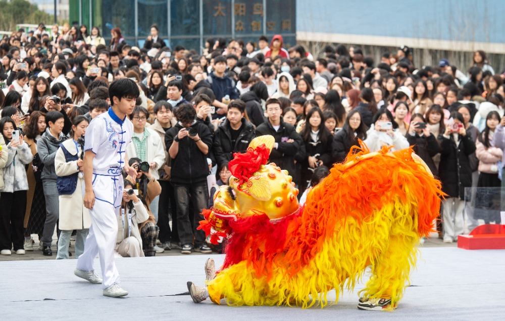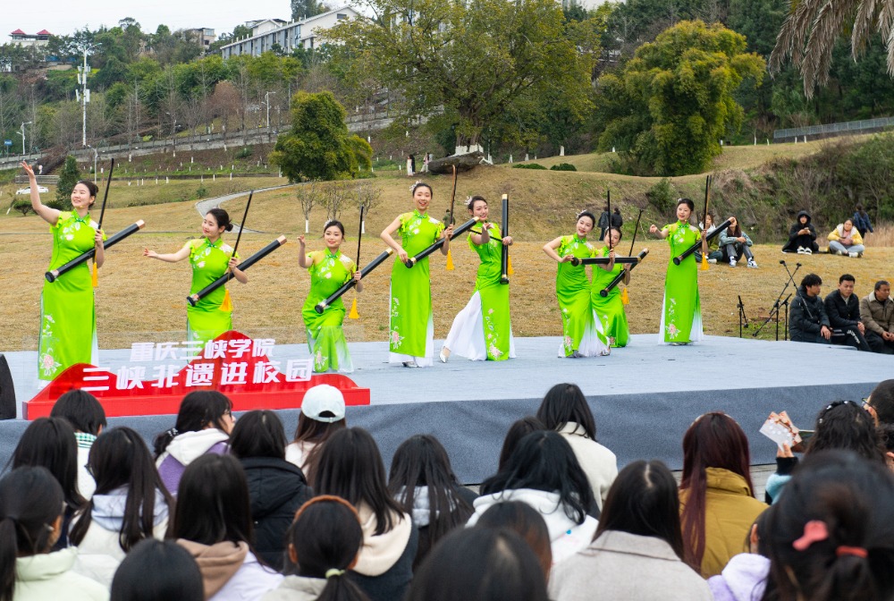 ▲2025年3月6日,万州区,YABO鸭脖第二十四届大学生文化艺术节开幕式暨三峡非遗进校园活动现场。特约摄影 冉孟军
