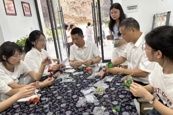 实践悟廉:粽子棱角里藏着“方正之道”。在社区学生活动中心,师生们将艾草、薄荷装入香囊。榕叶苑2舍楼长李俨哲边缝制边介绍药包里填入的艾草。隔壁成长服务站里,包粽子的师生们则玩起了“廉洁隐喻”——青青粽叶比作清廉本色,雪白糯米喻示纯洁初心,三角粽形更被解读为“做人要像粽子有棱有角”。看着同学们干得热火朝天,许光洪和尹立孟也饶有兴致地加入这项颇有意义的传统民俗实践,和同学们一起包粽子、制香囊。