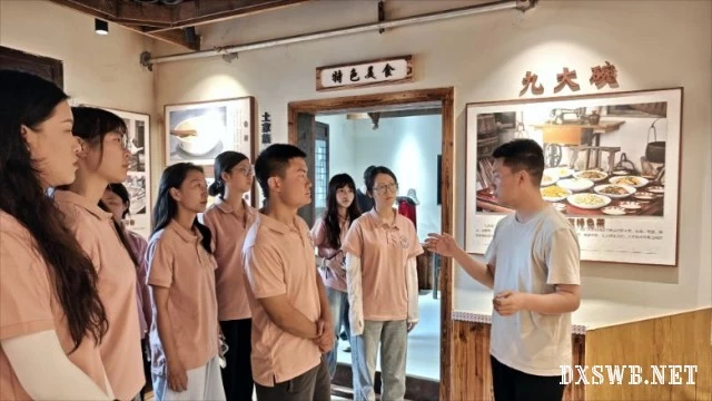 姜邻从村情村貌、传统村落、服饰歌舞、传统民俗、特色美食、民族团结等六个方面,向团队成员详细介绍了土家族人民的民俗生态面貌。团队成员由此了解到西兰卡普等手工艺品的制作过程,以及婚嫁殡葬的特有习俗,还深入探究了吊脚楼的榫卯艺术结构与建造。这里的历史不仅只珍藏于博物馆,更生动地体现在别具一格的吊脚楼建筑中,融入当地村民百姓的日常起居之中。