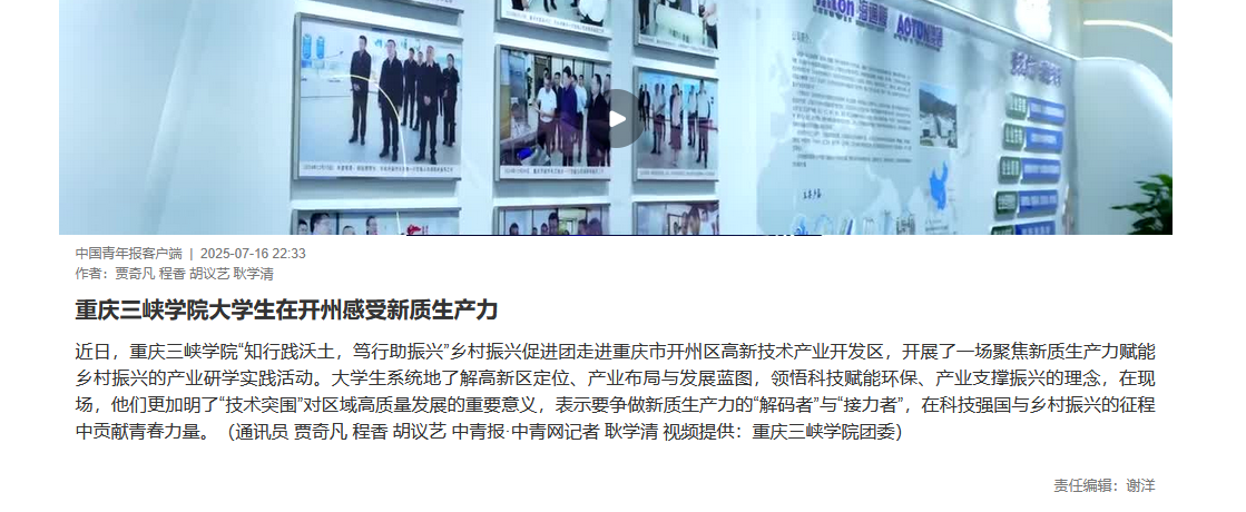 上一条:2025年7月26日《新华网》:青春为中国式现代化挺膺担当!2025重庆高校青年大学生“三下乡”社会实践特辑