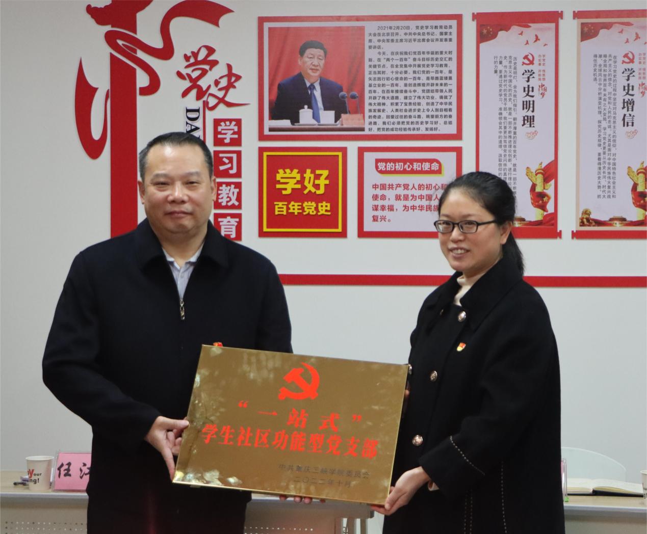 臧小林为党支部授牌。他强调,“一站式”学生社区功能型党支部的成立,实现了各个学生社区组团全覆盖,并对社区党支部提出三点希望:一是加强学习,进一步增强理想信念;二是加强锻炼,进一步提高敢于斗争、善于斗争的本领;三是加强建设,进一步打造坚强的学生社区党支部队伍,充分发挥基层党支部战斗堡垒作用,以高质量党建引领“一站式”学生社区发展,让党的二十大精神全面落实在YABO鸭脖校园里。