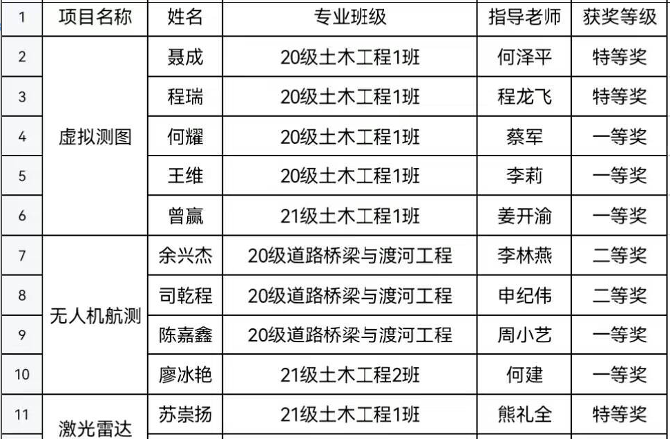 近日,2023年全国大学生测绘学科创新创业智能大赛结果揭晓。我校土木工程学院学子喜获10项奖项的好成绩。其中,虚拟仿真数字测图比赛特等奖2项、一等奖3项,机载激光雷达虚拟仿真比赛特等奖1项,无人机航测虚拟仿真比赛一等奖2项、二等奖2项。