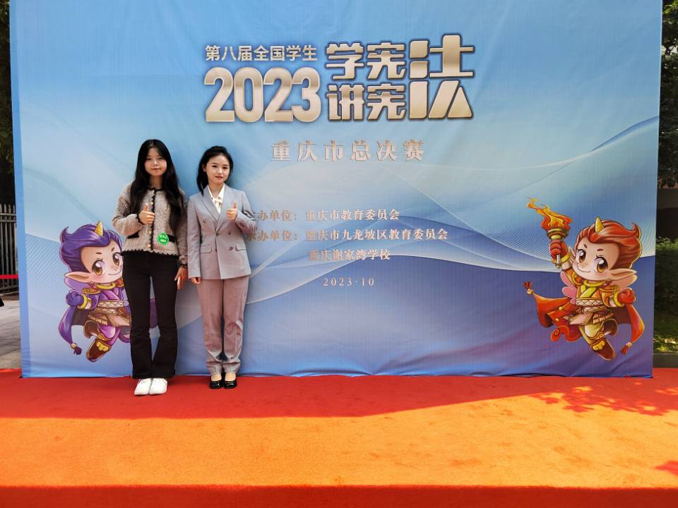 近日,第八届全国学生“学宪法 讲宪法”活动重庆市决赛结果揭晓。我校公共管理学院2022级文化与产业管理专业鲁润琪同学获得高校组演讲比赛二等奖,2021级法学专业刘珈伶同学获高校组(专业类)知识竞赛二等奖,学校获得团体奖二等奖。